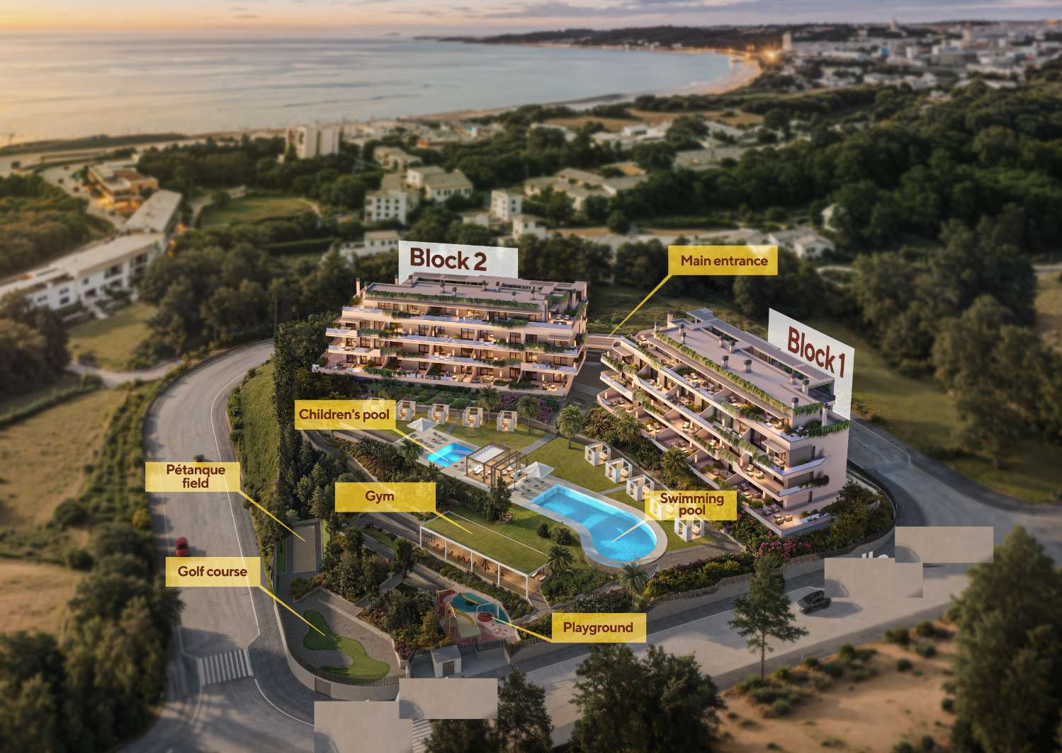 Společné prostory jsou nádherné a zahrnují bazén (děti i dospělí) a posilovnu, odkud můžete při cvičení vidět na moře. Můžete se také těšit na hřiště na petanque, minigolfové hřiště a dětské hřiště.