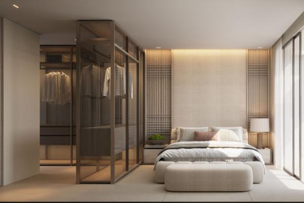 The bedrooms offer the same sense of calm and quality found throughout the apartment. Both rooms are designed with generous space, built-in wardrobes, and a clean, modern finish that keeps the atmosphere warm and organised. The main bedroom opens directly onto the terrace, allowing natural light to fill the space from morning to evening. The two bathrooms are finished with high-standard materials and soft lighting that give the spaces a refined, almost spa-like feel. Together, the bedrooms and bathrooms add a layer of comfort and practicality that completes the home.