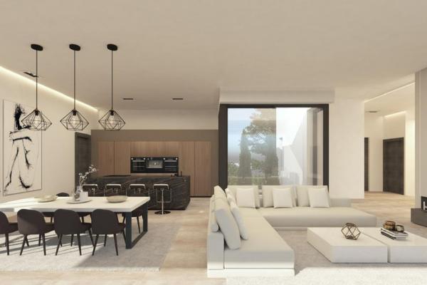 Inside, the villa will boast spacious open-plan interiors, where clean lines and minimalist aesthetics meet premium finishes and natural materials. An abundance of natural light while offering uninterrupted views that extend over the surrounding hills and coastline. The seamless integration of indoor and outdoor areas ensures that the mild Mediterranean climate can be enjoyed year-round—ideal for entertaining or simply relaxing in your private sanctuary.