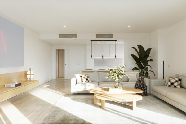 Todas las viviendas cuentan con cocinas equipadas, amplias terrazas y calidades de alto nivel, como sistema de agua caliente por aerotermia y preinstalación para carga de vehículos eléctricos. Los apartamentos en planta baja disponen de jardín privado.