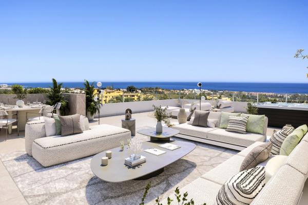 Apartamentos de lujo de 2, 3 y 4 dormitorios, y villas pareadas de 3 dormitorios, en Selwo-Nueva Milla de Oro, a pocos minutos de Puerto Banús y Estepona, en una comunidad exclusiva llena de comodidades con gimnasio, spa, coworking, paddle, jacuzzis, piscina de verano para adultos y niños, piscina climatizada infinity con vistas panorámicas al mar, parques infantiles y entrada de seguridad.