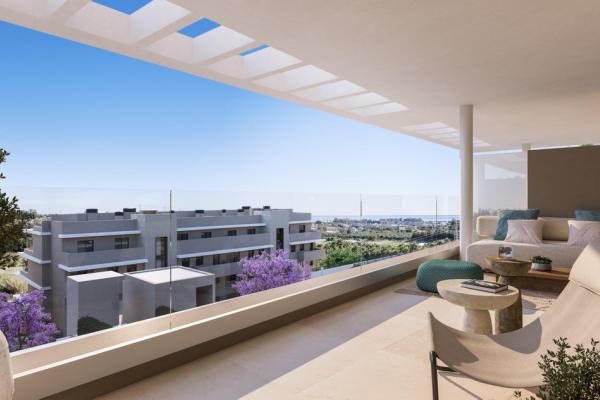 Este desarrollo mira al mar protegido por las montañas. Sus volúmenes casi aéreos son parte del paisaje. Una atalaya resguardada por Sierra Bermeja y orientada a las playas de Estepona. Descubre las mil tonalidades de los amaneceres en la Costa del Sol y quédate a ver cómo anochece y empiezan las largas noches de verano. Ya sea en una de las grandes terrazas de las viviendas en altura, en el jardín privado de las plantas bajas, o en los solárium panorámicos de los áticos. Sea donde sea, tendrás el Mediterráneo a tus pies.