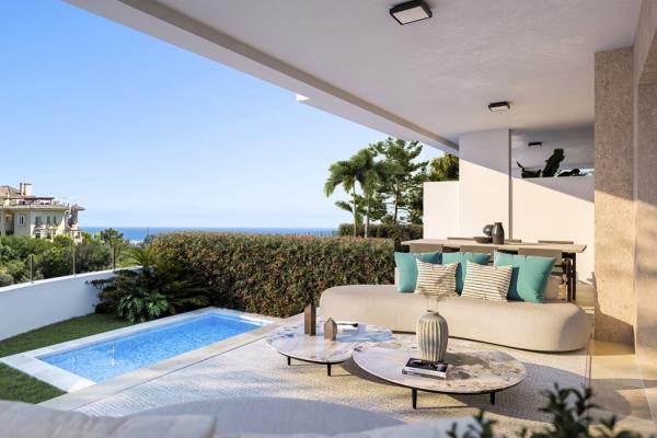 Apartamentos de lujo de 2, 3 y 4 dormitorios, y villas pareadas de 3 dormitorios, en Selwo-Nueva Milla de Oro, a pocos minutos de Puerto Banús y Estepona, en una comunidad exclusiva llena de comodidades con gimnasio, spa, coworking, paddle, jacuzzis, piscina de verano para adultos y niños, piscina climatizada infinity con vistas panorámicas al mar, parques infantiles y entrada de seguridad.