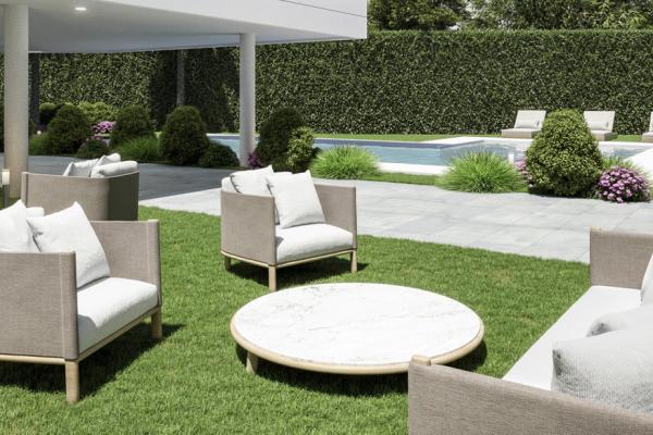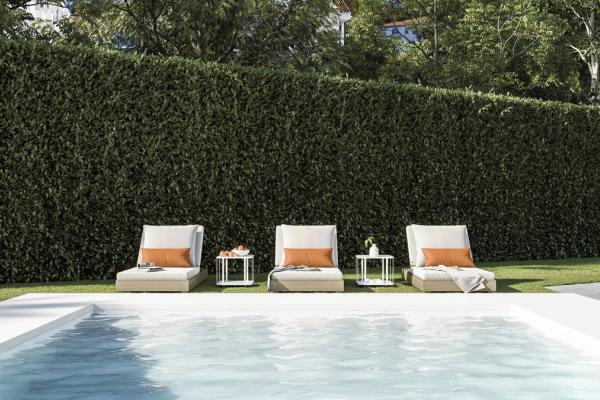 Como principal protagonista de las zonas comunes encontramos la piscina de 90 m2 con cloración salina e iluminación nocturna rodeada de un amplia solarium con cesped donde poder disfrutar de los numerosos días de sol. y acompañado de un chill out con vistas a la piscina.