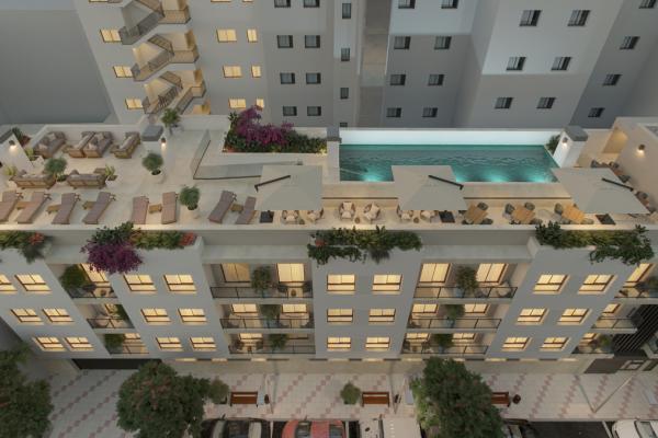 35 modernos apartamentos con 2 dormitorios y 2 baños, distribuidos en cocina abierta - sala de estar y balcón.