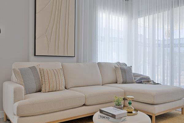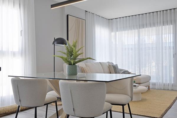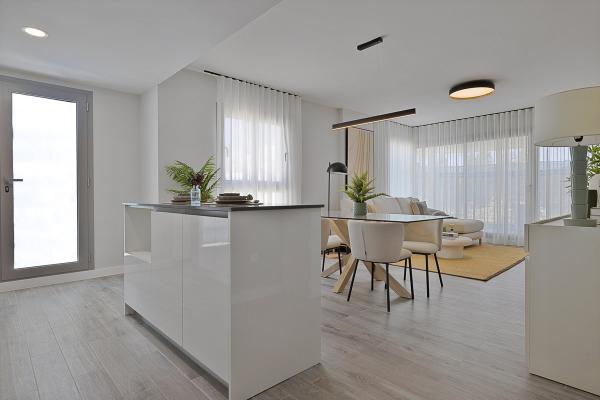 Las viviendas aúnan versatilidad y confort gracias a sus espacios diáfanos y optimizados. Ejemplo de ello son las cocinas con isla, abiertas e integradas con el salón. Los dormitorios cuentan con salida directa a las terrazas, para disfrutar de la brisa en los momentos de descanso. En los áticos, las terrazas son más amplias y con vistas panorámicas del mar Mediterráneo. Los bajos cuentan con un jardín privado.