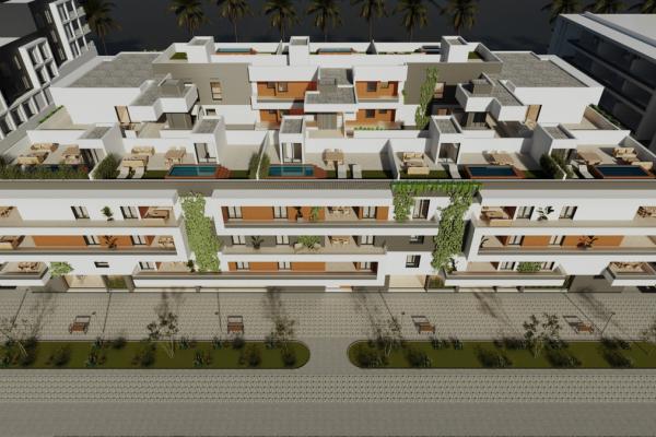 Promoción en San Pedro de Alcantara se compone de 35 viviendas de 2 y 3 dormitorios, con duplex con terrazas-solarium. Garajes en planta sótano y locales comerciales en planta baja, en un edificio de arquitectura de vanguardia, con calidades de primer nivel y una ubicación excepcional en corazón de la costa del sol.