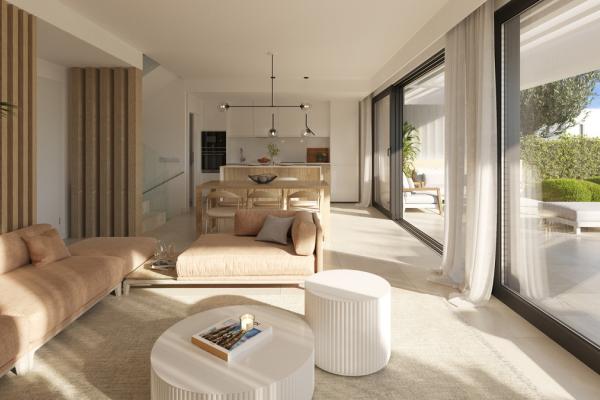 Un desarrollo residencial exclusivo compuesto por 50 villas adosadas de estilo contemporáneo con un amplio salón, cocina abierta amueblada y equipada con electrodomésticos de primeras marcas, 3 dormitorios o 2 dormitorios de gran tamaño, 2 o 3 baños, terraza y jardín.