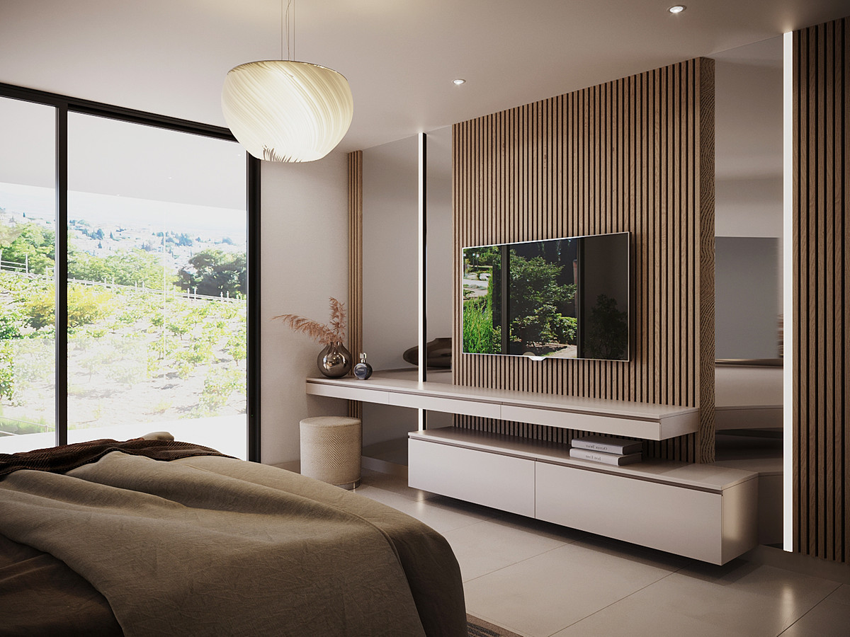 Las 3 villas están orientadas al sur y sureste y tienen impresionantes vistas al mar desde todas las plantas, incluso desde el sótano. Cada villa consta de 3 dormitorios en la primera planta y 1 dormitorio en suite en la planta superior, y en la planta baja se encuentran una sala de estar y un salón-comedor espacioso con cocina abierta que conduce a la gran terraza.