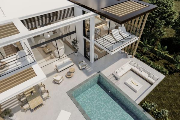Esta villa contemporánea se destaca por su diseño arquitectónico que refleja un juego de volúmenes con una estética contemporánea, mediterránea y elegante, ofreciendo relajación y comodidad, invitando a sumergirse en un estilo de vida único.