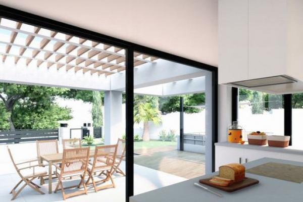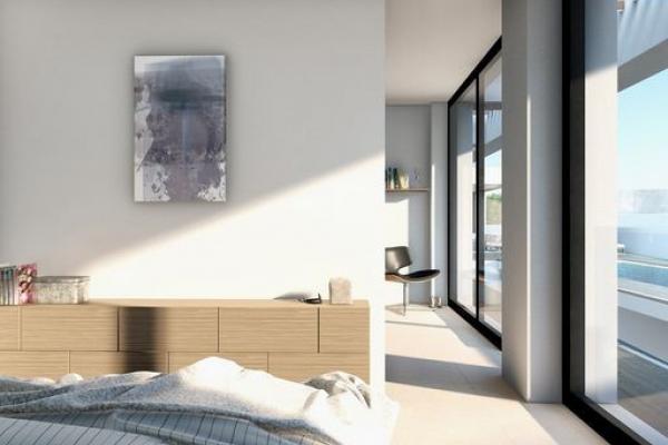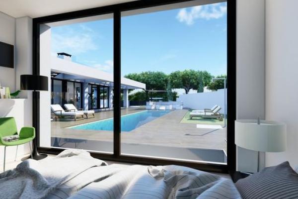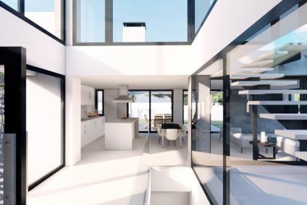 En el interior, las áreas de estar son espaciosas y llenas de luz natural. Las villas están diseñadas para maximizar el uso de la luz natural, con una orientación hacia el sur/oeste que ofrece impresionantes vistas y atardeceres desde la terraza. Las tres amplias habitaciones están ubicadas en el mismo nivel, lo que proporciona facilidad de acceso y la máxima comodidad y conveniencia para usted y sus invitados. Cada habitación cuenta con un baño en suite y armarios empotrados.