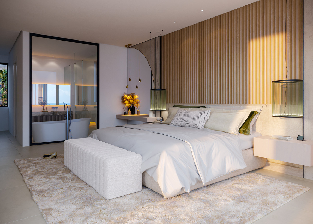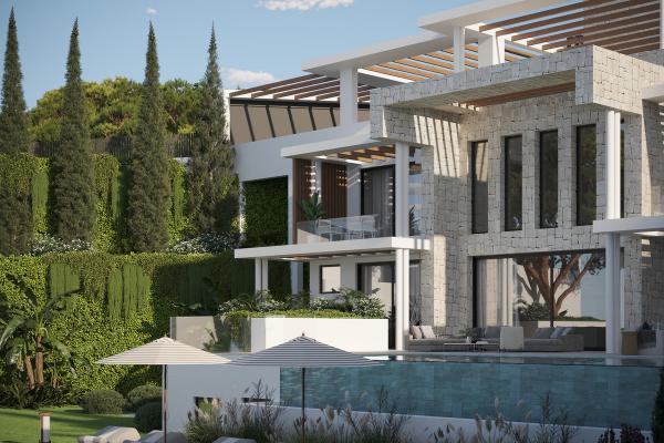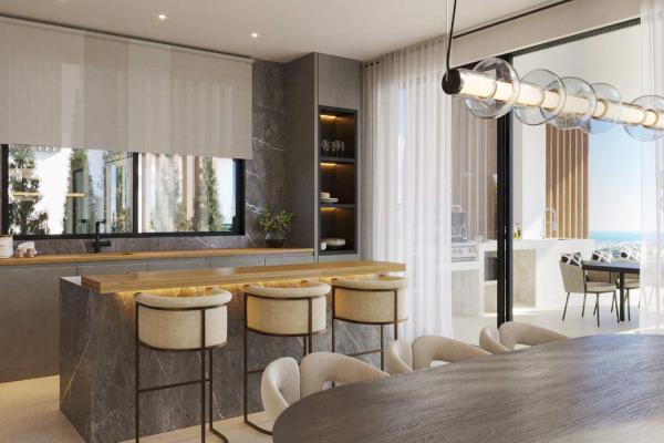 Se trata de un exclusivo desarrollo cerrado de 12 villas independientes diseñadas por el renombrado arquitecto Pablo Villarroel. Con más de 50 años de experiencia, su concepto es la integración perfecta de la arquitectura con la naturaleza. Una comunidad cerrada y segura de viviendas excepcionalmente espaciosas de 3, 4, 5 y 6 dormitorios (superficies construidas de 489 m² a 976 m²) con un nivel de acabados y comodidades sin igual. Cada villa tiene un diseño moderno de planta abierta con techos de 6 metros de altura en la sala de estar principal, desde donde se pueden disfrutar vistas panorámicas al mar y a la montaña. Ubicado a poca distancia de una hermosa playa de arena y servicios locales, estas viviendas de lujo incluyen cocinas Modulnova, ventanas Technal de techo a suelo, solárium amplio, ascensor totalmente instalado, piscina privada, jardines privados y un gran "espacio de ocio" con luz natural. Cada propiedad tiene calefacción por suelo radiante en toda la casa y una amplia gama de opciones de personalización, como dormitorios adicionales con baños en suite, área de bienestar con gimnasio privado, sauna/hammam y sala de cine/juegos. Con grandes parcelas (entre 1000 m² y 2000 m²), cada villa garantiza una excelente privacidad y tranquilidad.