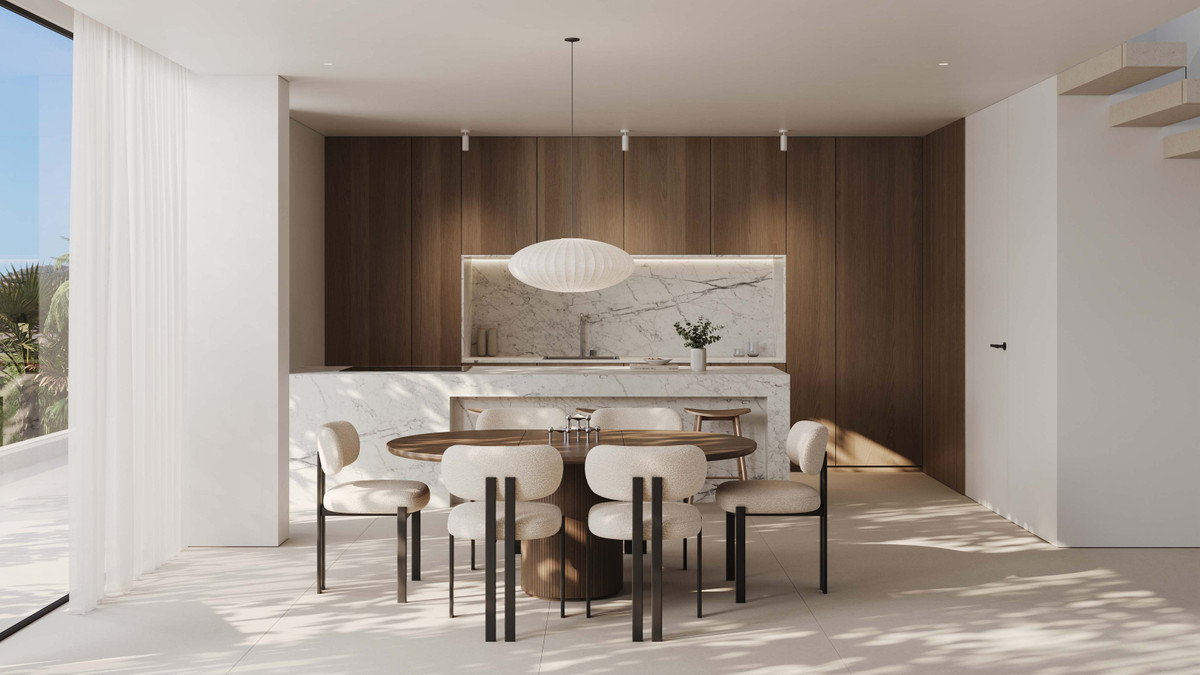 Esta obra maestra contemporánea combina arquitectura minimalista con lujoso confort, creando el perfecto santuario mediterráneo. Con ventanas de suelo a techo y interiores de planta abierta, la luz natural inunda el espacio, mejorando el ambiente sereno y la vida interior sin costuras.