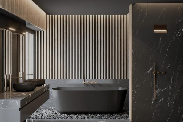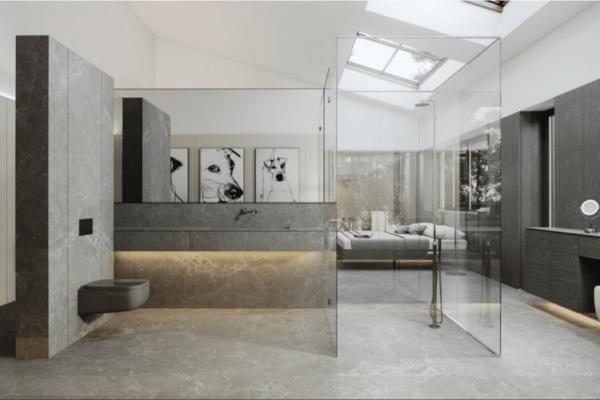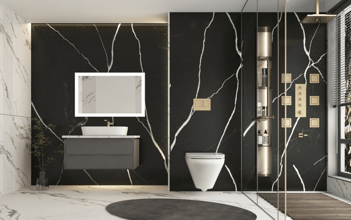- Paredes de baños con placas de COVERLAM (GRESPANIA) 2700X1200