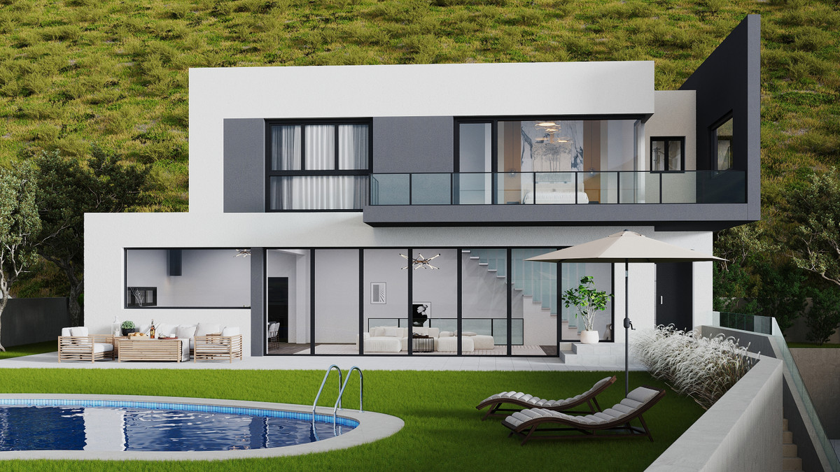 La villa se distribuye en tres plantas, diseñadas estratégicamente para aprovechar al máximo el entorno natural circundante desde cada espacio.