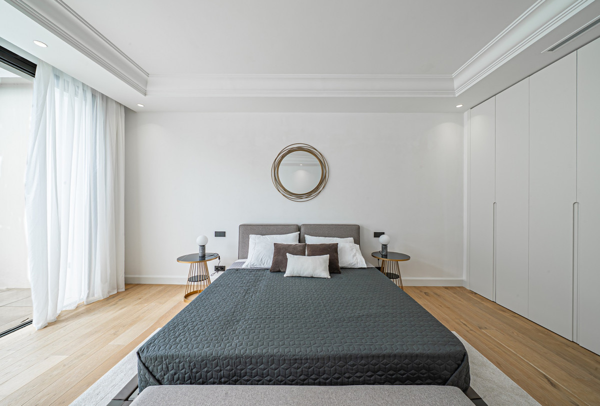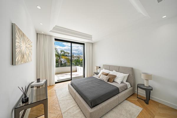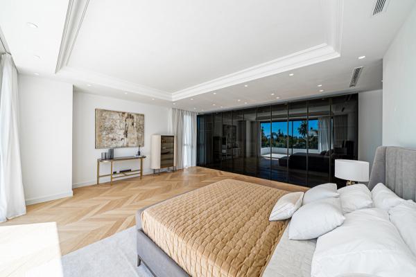 La planta superior consta de 3 dormitorios con baños en suite y vestidores. El dormitorio principal, con acceso a una gran terraza, ofrece una espectacular vista a la piscina y al mar.