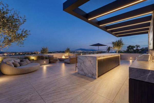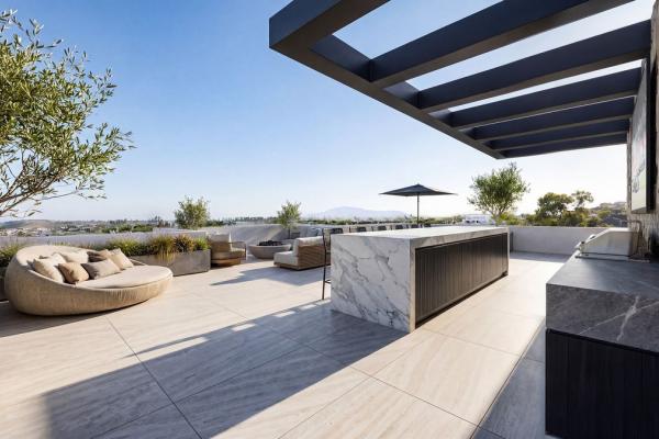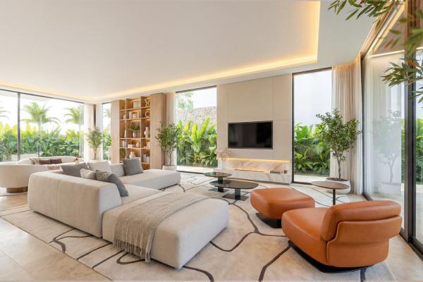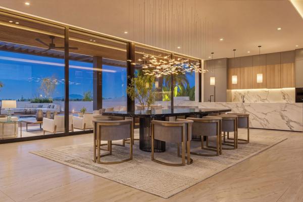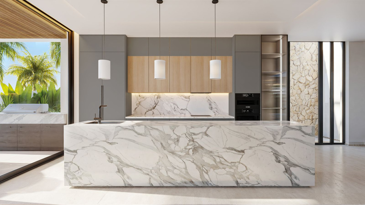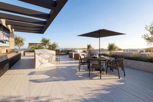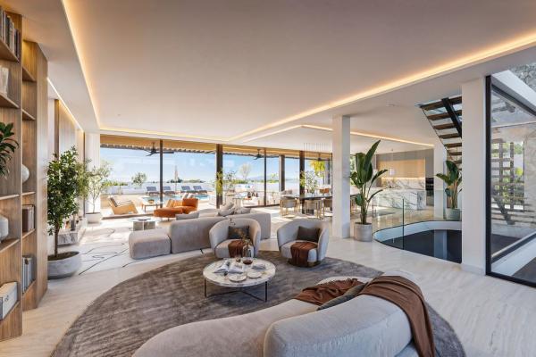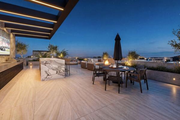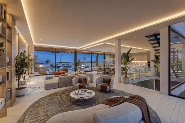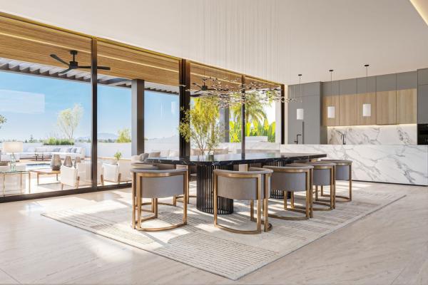 La propiedad contará con una amplia cocina, comedor y salón de planta abierta que fluye sin esfuerzo hacia más de 100 m² de terrazas cubiertas, creando una perfecta fusión entre el confort interior y la vida al aire libre. Grandes aberturas y un diseño arquitectónico cuidadoso maximizan la luz natural y generan una fuerte conexión con los espacios exteriores circundantes.