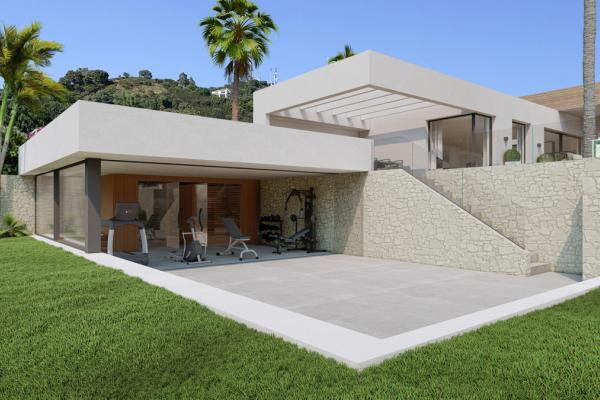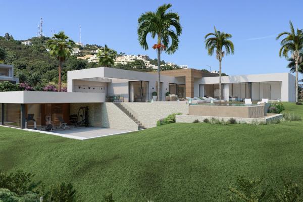 Villa contemporánea de diseño de 2 niveles en un entorno natural de colina en Altos de los Monteros. Una ubicación privilegiada con impresionantes vistas panorámicas sobre la costa, el Mar Mediterráneo, Gibraltar y la costa del Norte de África.