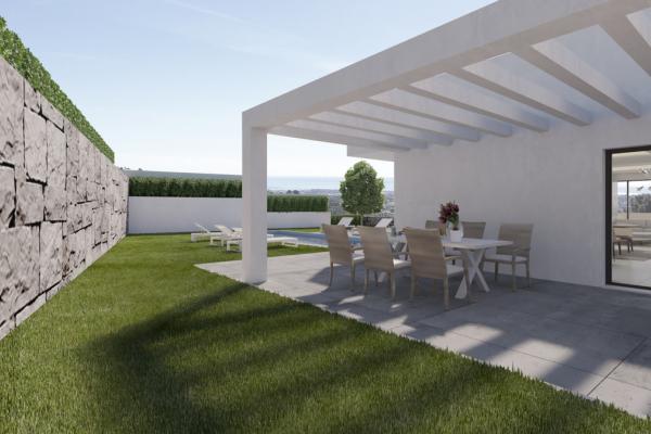 Impresionante villa moderna con vistas panorámicas al mar, montaña y ciudad. Incluye ascensor privado, garaje, nivel inferior versátil (gimnasio, cine o dormitorios extra), tres dormitorios en suite con terrazas, salón-comedor abierto con cocina integrada, aseo de cortesía, porche cubierto, piscina privada, jacuzzi y solárium en azotea.