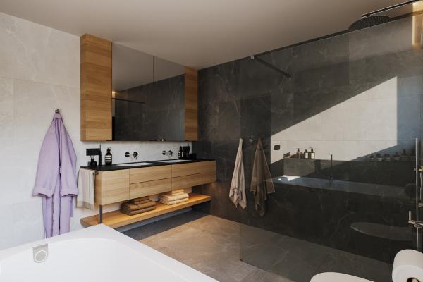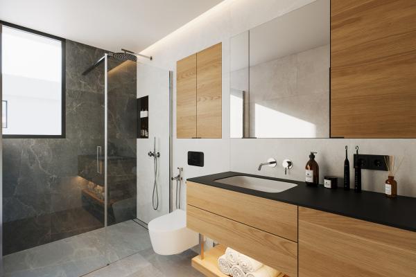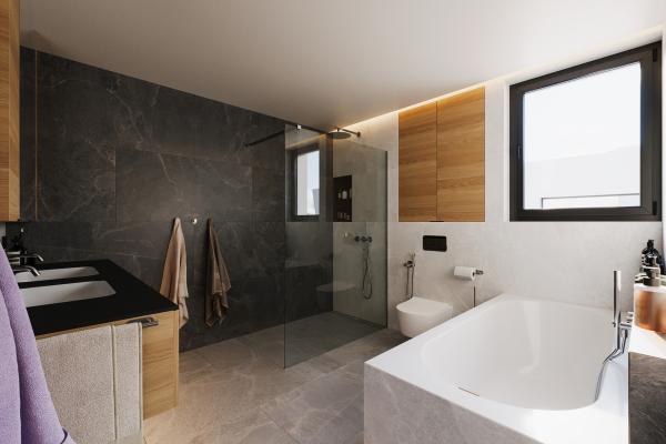 Suba por la escalera de mármol a la primera planta, donde le espera el dormitorio principal, con terraza, vestidor y un moderno cuarto de baño con bañera y ducha. Además, hay tres dormitorios más, cada uno con cuarto de baño en-suite para el máximo confort y privacidad para su familia e invitados.